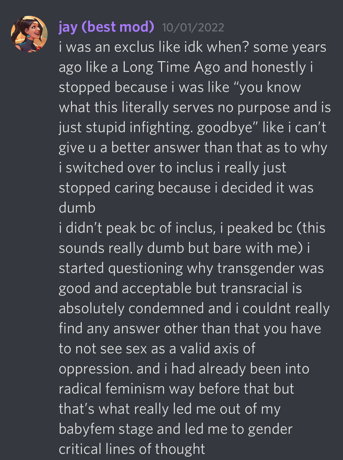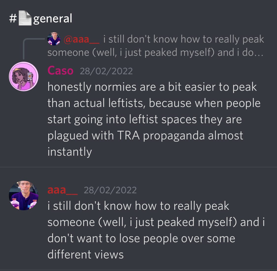For more insight into the minds of these young radfems, let’s have a look at a conversation about what made them ‘peak’.