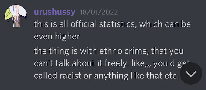 “The thing is with ethno crime, that you can’t talk about it freely. like,,, you’d get called racist or anything like that etc.” Being called racist when you’re using the same rhetoric, down to the same statistics, as actual neo Nazis? Unthinkable!